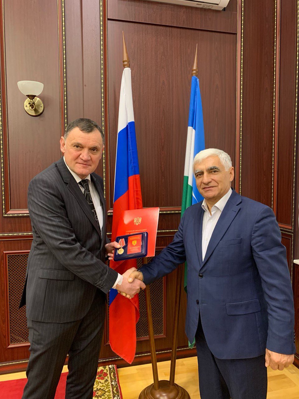 26 января 2026 года коллектив Управления Судебного департамента в Кабардино-Балкарской Республике (далее – Управление) в торжественной обстановке поздравил администратора Терского районного суда Кабардино-Балкарской Республики Орсаева Владимира Хабаловича с 65-летним юбилеем и проводил на заслуженный отдых (пенсию) в связи с достижением им предельного возраста пребывания на государственной службе. Мероприятие началось с выступления начальника Управления Хамирзова Мурата Хараталиевича, который поздравил Владимира Хабаловича с юбилеем и произнес в его адрес слова глубокой благодарности за многолетнюю добросовестную работу, высокий профессионализм, а также значимые личные и деловые качества. Далее начальник Управления вручил администратору Терского районного суда Кабардино-Балкарской Республики за значительный личный вклад в развитие судебной системы, всестороннее содействие в укреплении и совершенствовании правосудия в Российской Федерации ведомственную награду Судебного департамента при Верховном Суде Российской Федерации - медаль «За безупречную службу» с памятным подарком от коллектива Управления. Мурат Хазраталиевич поздравил Владимира Хабаловича с началом заслуженного отдыха и пожелал ему крепкого здоровья, благополучия и всего самого доброго в жизни. Коллектив Управления также присоединился к его поздравлениям: коллеги высказали много теплых слов и поздравлений в адрес юбиляра, пожелали ему крепкого здоровья и успехов во всех начинаниях. ![]() Пресс-служба Управления |