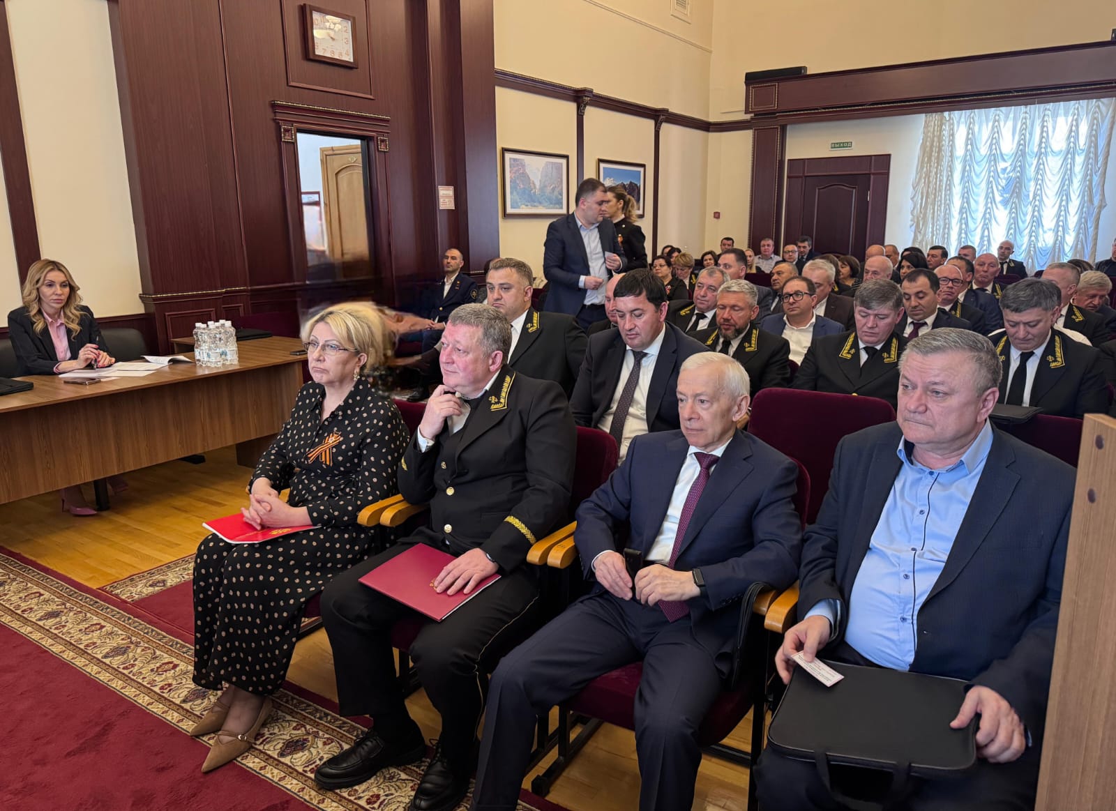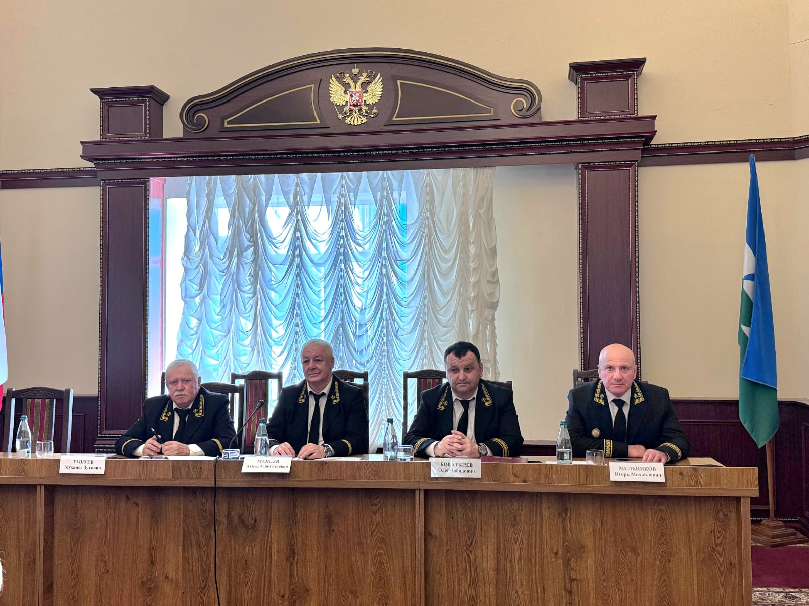 от Арбитражного суда КБР: 3. Кустова Светлана Владимировна 4. Маирова Альбина Юрьевна 5. Паштова Марианна Хасанбиевна 6. Хатухов Заурбек Аубекирович 7. Цыраева Фатимат Абдуллаевна от городского, районных судов КБР: 8. Тлостанов Аслан Юрьевич 9. Ахобеков Алим Амалиевич 10. Мафедзов Алик Мухамедович от Нальчикского гарнизонного военного суда: 11. Черкасов Андрей Николаевич от мировых судей КБР: 12. Будаева Зухра Абдуллаховна От имени Президиума и делегатов Конференции Макоев А.А. поздравил новый состав Квалификационной коллегии судей КБР, пожелал плодотворной работы, направленной на повышение авторитета судебной системы и формирование достойного, качественного судейского корпуса. В продолжение Конференции об итогах работы выступили: ⮚ С информацией о работе Совета судей Кабардино-Балкарской Республики в 2024 году - председатель Совета судей КБР Макоев А.А. ⮚ С информацией о работе Экзаменационной комиссии Кабардино-Балкарской Республики по приему квалификационного экзамена на должность судьи в 2024 году - председатель Экзаменационной комиссии Браева Э.Х. ⮚ С отчетом о деятельности Управления Судебного департамента в Кабардино-Балкарской Республике в 2024 году и задачах на 2025 год - врио начальника Управления Джаппуева Ф.Л. В своём выступлении Джаппуева Ф.Л. обозначила, что надлежащее финансовое обеспечение деятельности районных судов, органов судейского сообщества, финансирование мировых судей является одной из наиболее приоритетных задач Управления. Управлению в отчётном периоде было выделено на выборочный капитальный ремонт зданий (сооружений) судов – 13803,653 тыс. рублей. Данные средства освоены по объекту Нальчикского городского суда, по ул. Нахушева, 3 – 9236,425 тыс. рублей и Эльбрусского районного суда по ул. Энеева, 11 а – 4567,228 тыс. рублей. Обеспеченность судов КБР автомобильным транспортом в 2024 году составила 160%. Общее количество автомобилей райгорсудов КБР, Нальчикского гарнизонного военного суда составляет 24 единицы. В 2025 году Управлением планируется продолжить работу по приобретению новых и списанию устаревших автомобилей. Обеспеченность судов республики символами государственной власти и мантиями составляет 100%. Осуществлена работа по закупке мантий для вновь назначенных судей и замене устаревших, а также служебного обмундирования для судей, символов государственной власти. В связи с износом имеющегося оборудования произведена замена системы видеонаблюдения в здании Баксанского районного суда по ул. Шукова 17, на сумму 930,0 тыс. руб. и в здании Прохладненского районного суда, на сумму 1 607,0 тыс. руб. Особое внимание в 2024 году уделялось вопросам организации охраны зданий (помещений) райгорсудов КБР, НГВС. Охрана зданий и осуществление пропускного режима в рабочие дни в период времени с 09.00 ч. до 18.00 ч. (кроме выходных и праздничных) осуществлялась судебными приставами по ОУПДС УФССП России по КБР. В 15 зданиях райгорсудов КБР, НГВС охрана осуществлялась подразделениями ФГКУ «УВО ВНГ России по КБР» и филиала ФГУП «Охрана» Росгвардии по КБР. Управлением в 2024 году были полностью освоены денежные средства, выделенные на обеспечение безопасности судебной деятельности. В 2024 году проведены целевые проверки по изучению организации деятельности в 6 судах (Нальчикский городской суд, Майский, Прохладненский, Баксанский, Эльбрусски